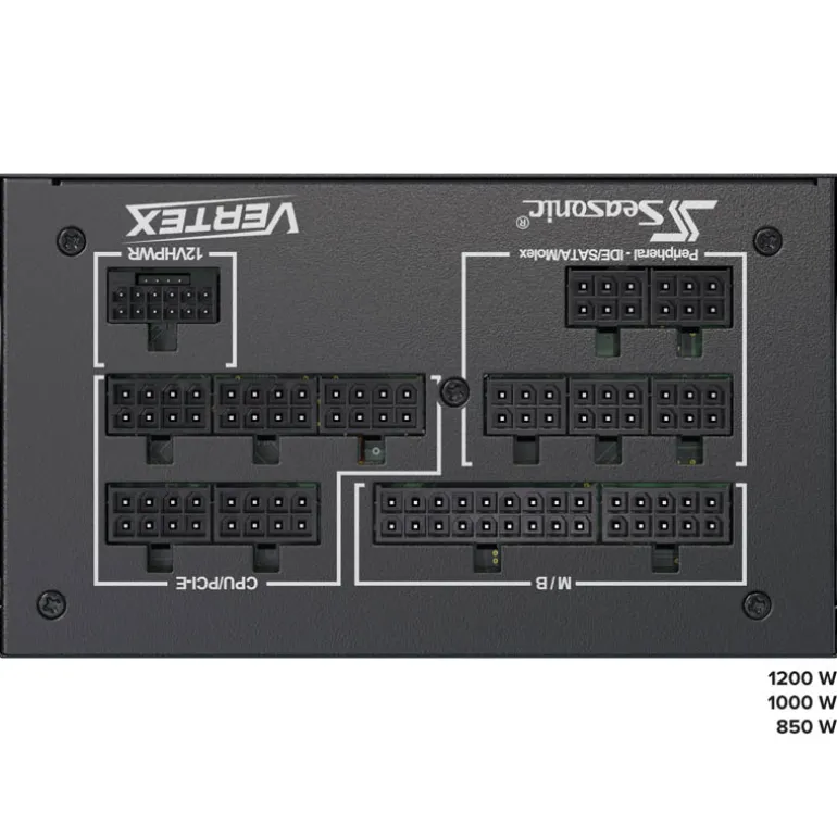 La nueva serie VERTEX de Seasonic ofrece fuentes de alimentación de 1000W con eficiencia Gold. Cumple con estándares ATX 3.0 y PCIe 5.0, con modularidad completa para una gestión de cables óptima. Incluye un cable 12VHPWR para tarjetas gráficas, un silencioso ventilador de 135 mm con rodamiento dinámico de fluidos, y un control híbrido para minimizar el ruido. Con certificación 80 PLUS® Gold, garantía de 12 años, y características de protección avanzadas, la serie VERTEX asegura rendimiento confiable y duradero.