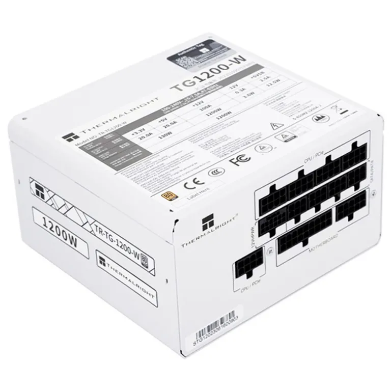 La Fuente de Alimentación ThermalRight TR-TG 1200-W 80 Plus Gold 1200W ATX 3.0 PCIe 5.0 Modular Blanca combina potencia y eficiencia con un diseño full-modular y un elegante acabado en color blanco. Con certificación 80 PLUS Gold, garantiza una energía estable y optimizada para configuraciones de alto rendimiento. Compatible con ATX 3.0 y PCIe 5.0, es ideal para PC gaming y estaciones de trabajo de última generación.