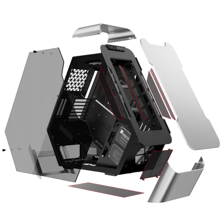 TR03 es una carcasa ATX de alta gama desarrollada en base a elementos triangulares, el hardware triangular está fabricado con aluminio de 4 mm de espesor mediante un innovador proceso de extrusión.