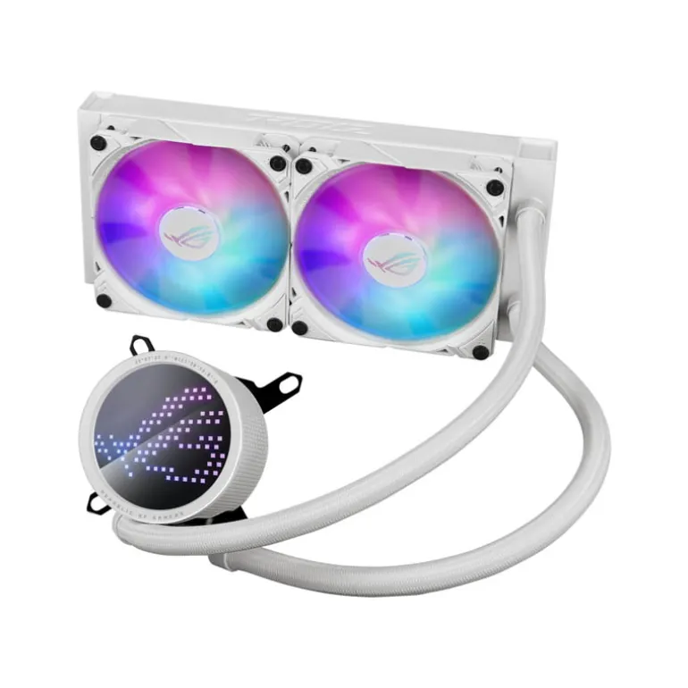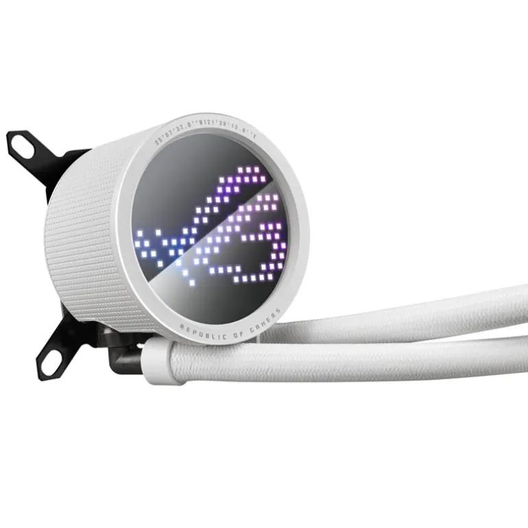 Domina gloriosamente las térmicas de tu equipo de alto rendimiento con el ROG Ryuo III 240 ARGB White Edition. Su caparazón de inspiración polar complementa las construcciones completamente blancas y enmarca una pantalla AniMe Matrix que se puede personalizar para expresar su lealtad de manera única.