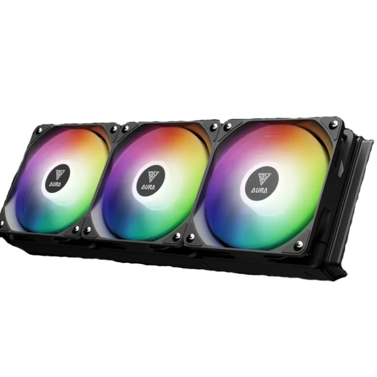 El AURA GL360 LITE es un eficiente enfriador líquido ARGB equipado con un motor potente, una base de cobre mejorada y un sistema optimizado de circulación de líquido para un rendimiento confiable. También cuenta con una tira de luz en el cabezal de la bomba, agregando un toque elegante a tu configuración.