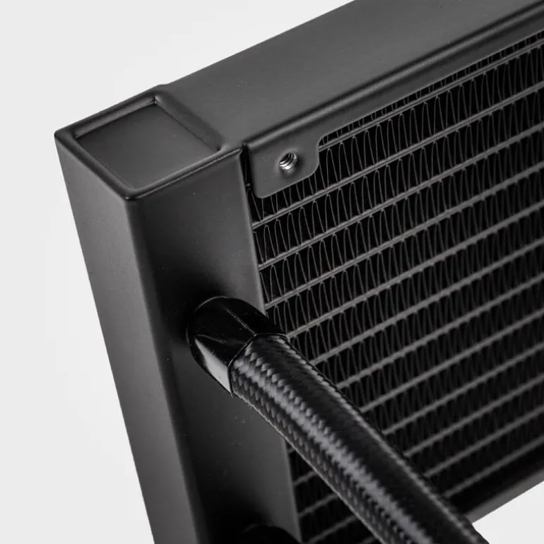 Para optimizar el rendimiento térmico, el Refrigerador de CPU Kolink Umbra Void AIO de Rendimiento ARGB está fabricado con materiales premium. El radiador tiene un diseño completamente de aluminio y una alta densidad de aletas, con un revestimiento negro puro. Esto se combina con una base de cobre y pasta térmica con una conductividad térmica de 13,4 W/mk para optimizar la conducción y la extracción de calor.
