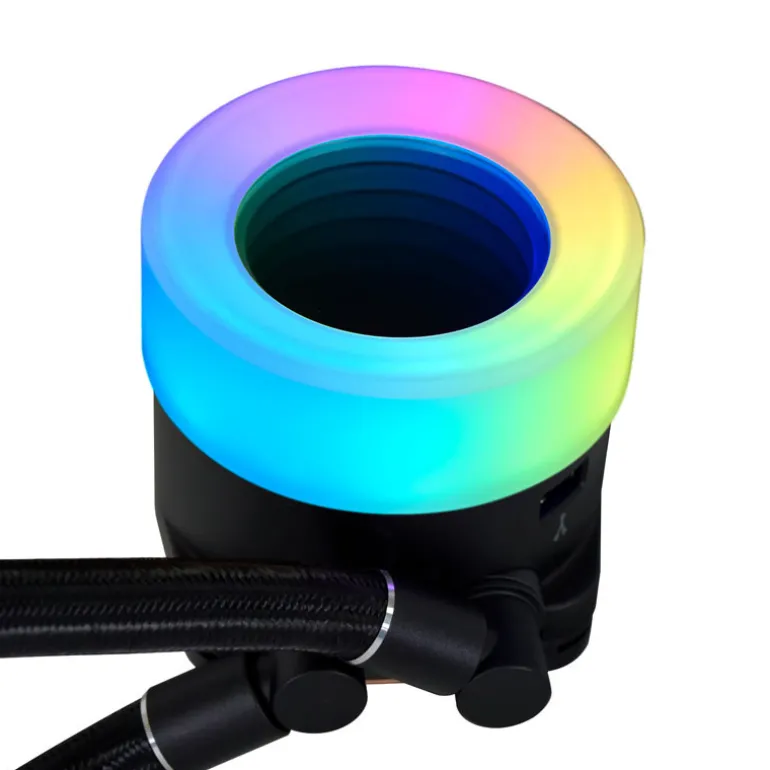 Además de la fantástica iluminación de la bomba de la CPU, el Galahad Trinity II también incluye preciosos ventiladores ARGB. Gracias al diseño en cadena, los vibrantes LED RGB de estos ventiladores pueden controlarse simultáneamente, para crear efectos de iluminación únicos.