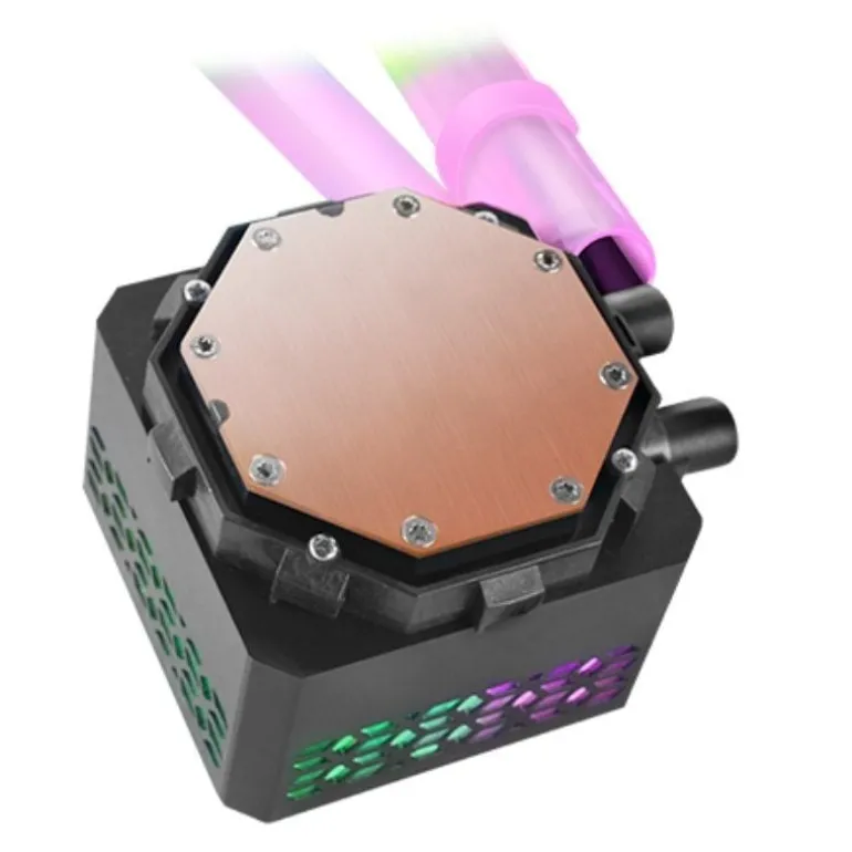 Espectacular iluminación ARGB 360º en los tubos, ventiladores y el bloque de refrigeración. Además, el bloque de CPU cuenta con un espejo multicapa que te hipnotizará con un efecto de profundidad infinita.