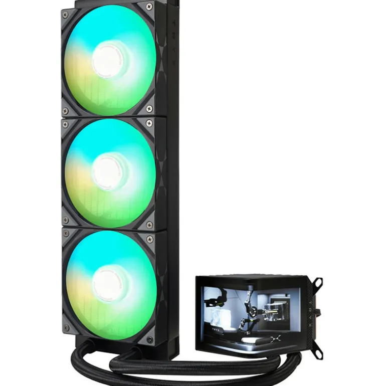 El sistema de refrigeración líquida Tryx Panorama 360 ARGB presenta una pantalla AMOLED en forma de L con resolución 2K@60Hz y visibilidad total desde múltiples ángulos. Equipado con la tecnología ASETEK de 8ª Generación, utiliza un motor trifásico, una tubería un 40% más gruesa y una base de cobre micro-convexa, asegurando un rendimiento de enfriamiento optimizado. Los ventiladores ROTA ARGB ofrecen iluminación personalizable y actualizaciones OTA, además de control dinámico de velocidad.