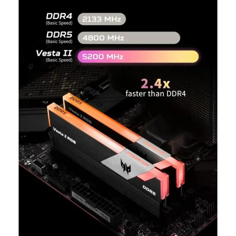 Ya sea gaming, metaverso o creación de contenido exigente, hoy necesitas el máximo rendimiento posible. Predator Vesta II lleva la velocidad DDR5 al siguiente nivel, ofreciendo un impulso sólido en cualquier juego o tarea intensiva.