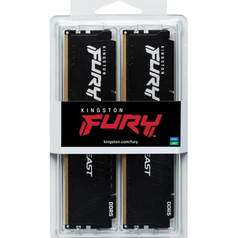 Kingston Kingston Fury Beast es un kit de dos módulos de memoria DDR5-6000 CL36 SDRAM de 32GB cada uno, con configuración 4G x 64-bit y tecnología 2Rx8. Este kit soporta perfiles AMD® EXPO v1.0 e Intel® Extreme Memory Profiles (Intel® XMP) 3.0, ofreciendo una capacidad total de 64GB.