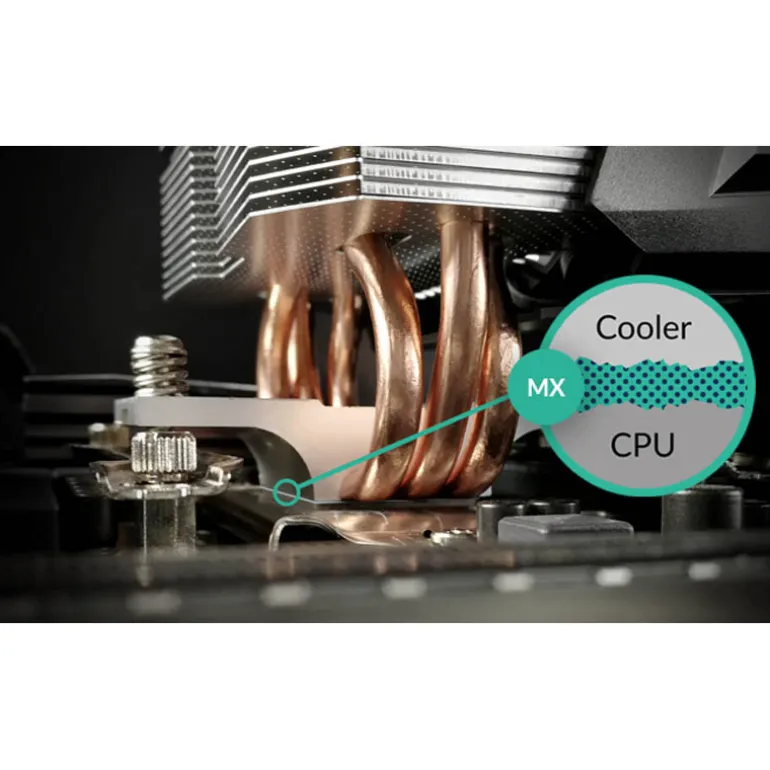 Las superficies de los chips del procesador y los pisos del enfriador están cubiertos con abolladuras microscópicas; La pasta térmica MX-2 de ARCTIC está compuesta por micropartículas de carbono que rellenan estas cavidades. Esto crea una superficie propicia para una conductividad térmica extremadamente alta, lo que garantiza una transferencia de calor rápida y eficiente desde la CPU o la GPU al enfriador. Con su excelente rendimiento, MX-2 es una de las mejores pastas térmicas del mercado.