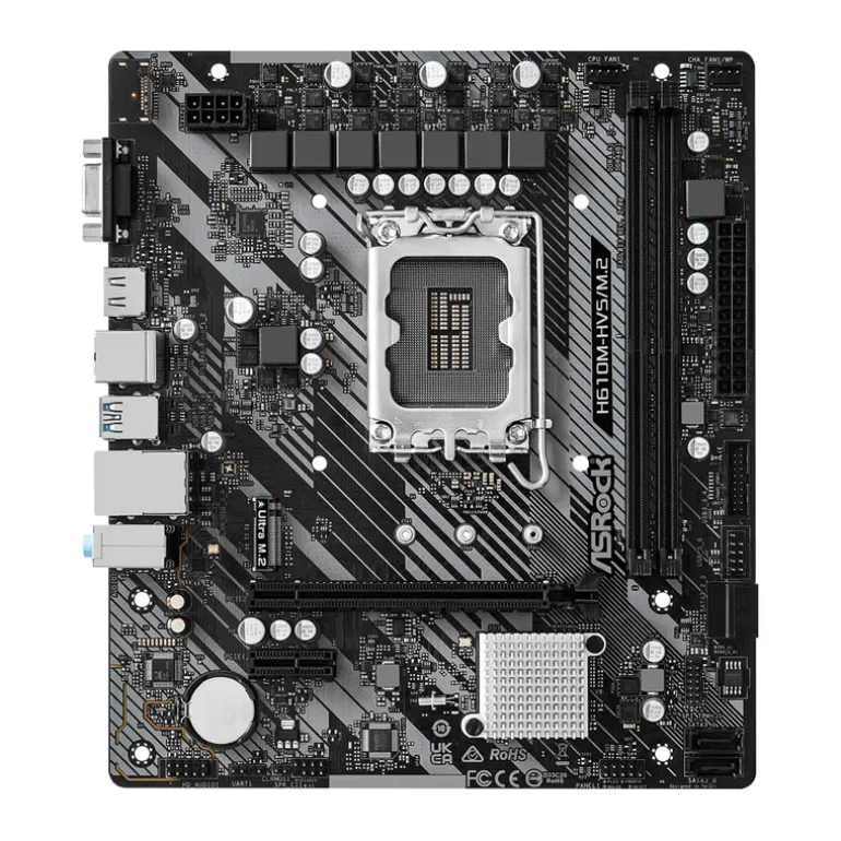 La placa base ASRock H610M-HVS/M.2 R2.0, diseñada para el Socket 1700, es compatible con procesadores Intel® Core鈩ª, 13ª y 12ª generación. Su robusto diseño de alimentación de 6+1+1 fases garantiza un rendimiento eficiente. Admite memoria DDR4 hasta 3200MHz y ofrece conectividad avanzada con 1 PCIe 4.0 x16 y 1 PCIe 3.0 x1. Las opciones de salida gráfica incluyen HDMI y D-Sub. El Realtek ALC897 Audio 7.1 canales HD Codec proporciona una experiencia de sonido inmersiva. Con 4 SATA3 y 1 Ultra M.2 (PCIe Gen3 x4), junto con 4 puertos USB 3.2 Gen1 (2 traseros, 2 frontales) y 6 USB 2.0 (4 traseros, 2 frontales), así como Realtek Gigabit LAN, ofrece una plataforma versátil y bien conectada.