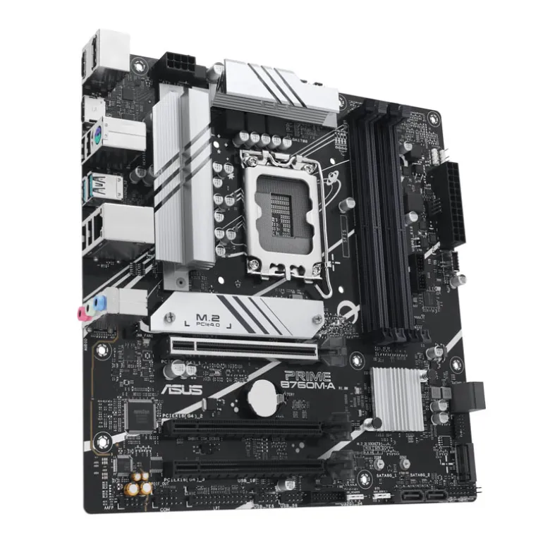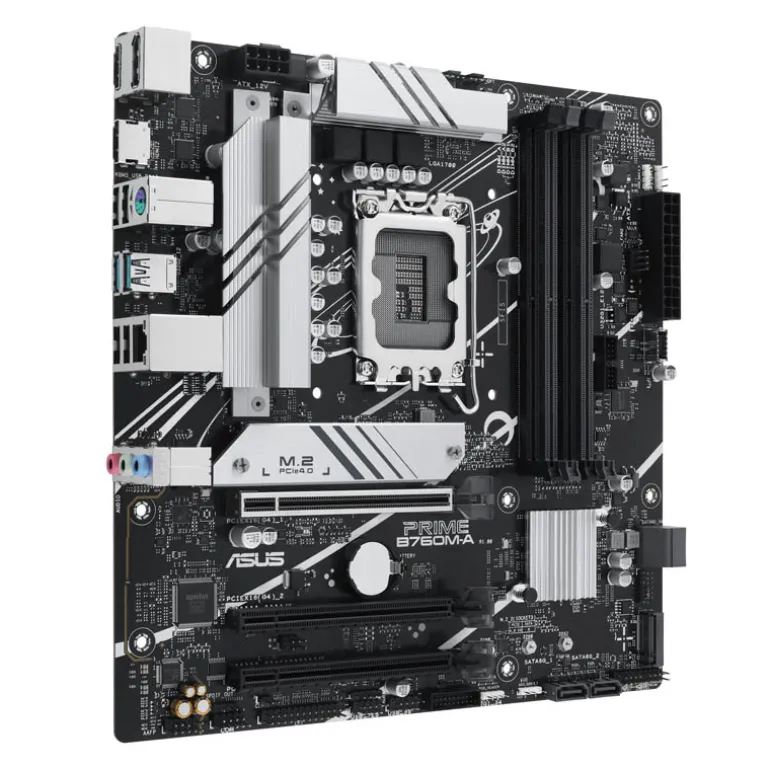 ¡Descubre la placa base Intel® B760 (LGA 1700) mATX! Equipada con PCIe 4.0, DDR5, dos ranuras M.2, Ethernet Realtek 2.5Gb, DisplayPort, Dual HDMI鈩® y Aura Sync. Compatible con los procesadores Intel® de 13ª y 12ª generación. Conectividad ultrarrápida gracias a PCIe 4.0 y M.2, además de una refrigeración completa con disipadores de calor y ventiladores inteligentes. Disfruta de una iluminación RGB personalizable y protege tus datos con el software ASUS Control Center Express.