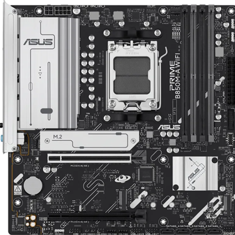 PRIME B850M-A WiFi cuenta con un diseño de alimentación de 8+2+1 fases con MOSFETs discretos, garantizando una entrega eficiente y estable de potencia para procesadores AMD y un rendimiento estable para el uso diario.