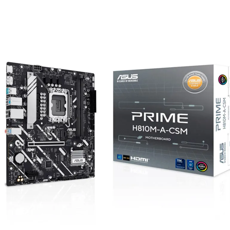 La Placa Base ASUS Prime H810M-A-CSM está diseñada para ofrecer un rendimiento sólido y confiable, siendo ideal para equipos de trabajo y sistemas de alto rendimiento. Esta versión CSM (Corporate Stable Model) ofrece garantías adicionales de soporte y estabilidad a largo plazo para entornos profesionales. A diferencia de otros modelos, no incluye conectividad inalámbrica integrada, pero mantiene todas las demás características esenciales, como la compatibilidad con procesadores Intel® Core鈩ª serie, memoria DDR5 y opciones de almacenamiento versátiles con múltiples puertos SATA y ranuras M.2.