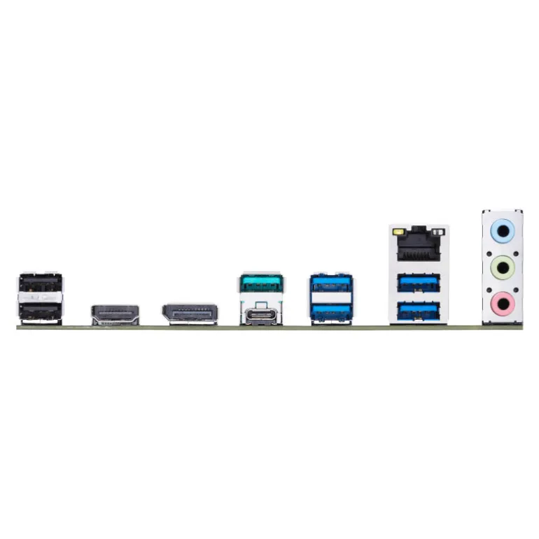 Un lote de puertos USB admite equipos de gama alta cargados con periféricos, incluido el conector USB tipo C trasero con USB 3.2 Gen 2×2 ultrarrápido para velocidades de transmisión de hasta 20 Gbps.