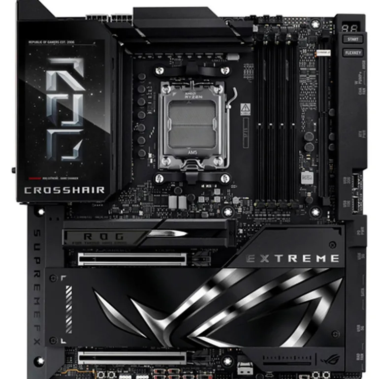 El ROG Crosshair X870E Extreme es el compañero definitivo para cualquier procesador AMD Ryzen鈩® 5.0 para garantizar el máximo rendimiento y preparación para el futuro. Su completa conectividad incluye USB4®, y la pantalla LCD integrada de 5 pulgadas ofrece una forma única de supervisar el rendimiento del sistema o añadir un toque de estilo personalizado.
