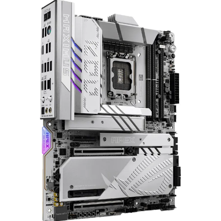 Finalmente, la Z890 Apex presenta un diseño estético y funcional, con un sistema de refrigeración eficiente que incluye disipadores de calor para los componentes críticos. Los usuarios pueden personalizar la iluminación y la configuración de su placa base mediante el software Armoury Crate, lo que les permite crear un setup único que refleje su estilo personal.