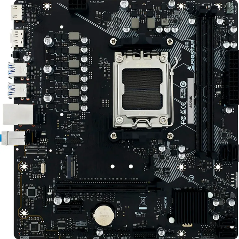 La Biostar A620MS es una placa base Micro-ATX con socket AM5 orientada a montajes equilibrados y actuales para uso diario, oficina y gaming de entrada. Basada en el chipset AMD A620, permite aprovechar procesadores Ryzen de nueva generación y memoria DDR5, ofreciendo una plataforma moderna, estable y con buenas opciones de ampliación en formato compacto.