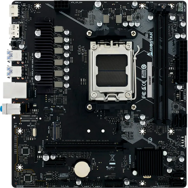 La Biostar B650MT es una placa base Micro-ATX con socket AM5 pensada para montar un PC actual y equilibrado sobre plataforma AMD. Compatible con procesadores Ryzen 7000/8000/9000, ofrece una base sólida para equipos de uso general, gaming y productividad, combinando conectividad moderna, soporte de memoria DDR5 y opciones de ampliación para almacenamiento y gráfica dedicada.