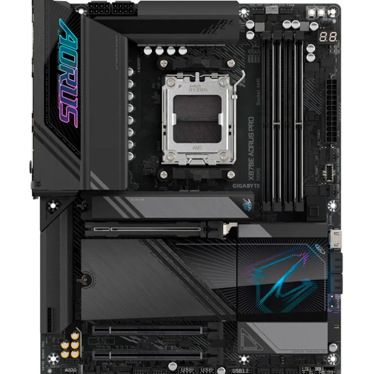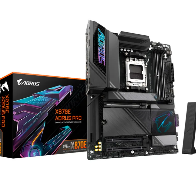 La Gigabyte X870E AORUS Pro es una placa base de alto rendimiento para procesadores AMD Ryzen鈩ápido con 4 ranuras M.2 (3 PCIe 5.0 x4), conectividad avanzada con Wi-Fi 7, LAN 2.5 GbE y Dual USB4 Tipo-C, además de un diseño térmico optimizado con armadura VRM y disipadores M.2 sin tornillos.