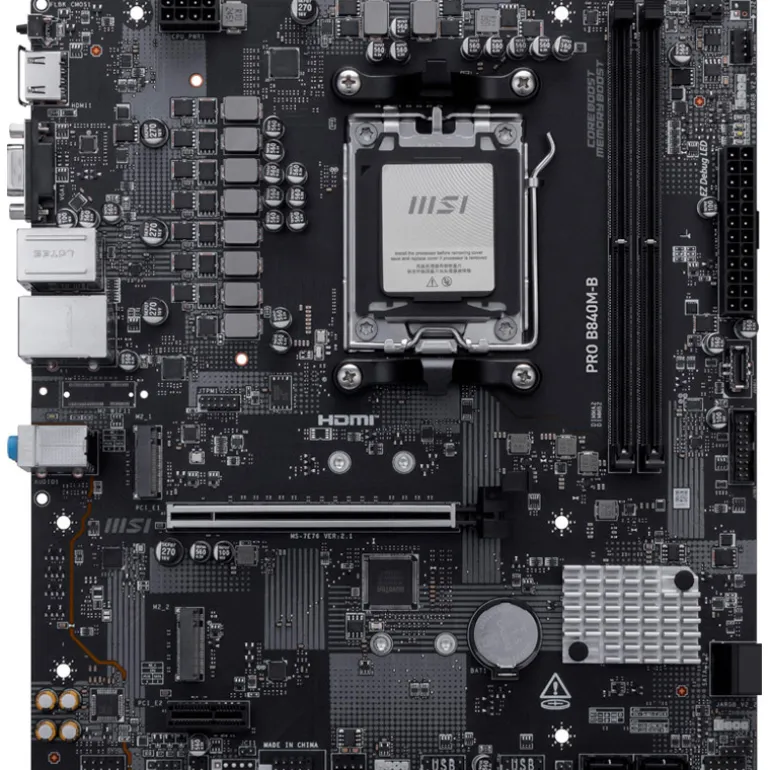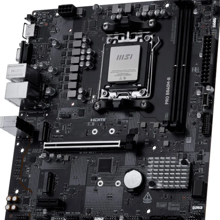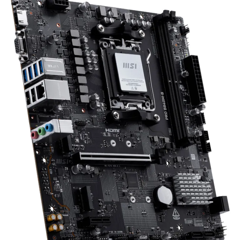 La placa base MSI PRO B840M-B Socket AM5 está diseñada para ofrecer un rendimiento confiable y eficiente para procesadores AMD Ryzen鈩ólida solución de almacenamiento, es ideal para entornos de trabajo que requieren estabilidad y velocidad. Su formato micro-ATX y características avanzadas la convierten en una opción versátil para equipos de alto rendimiento.