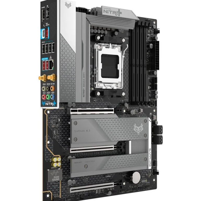 La Sapphire Nitro+ B850A WIFI 7 se basa en el chipset AMD® B850 y el socket AM5, ofreciendo compatibilidad con procesadores de sobremesa AMD Ryzen鈩