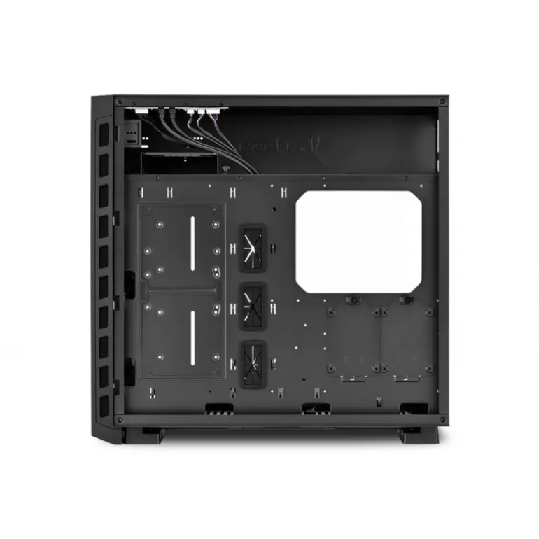 Desde que el hardware de alto rendimiento necesita generalmente más espacio, hemos utilizado el interior de la NIGHT SHARK al máximo: así como también ocurre con los factores de forma habitualmente, la caja también está preparada para placas base con procesadores dual o múltiples (SSI EEB), y puede adaptarse fácilmente a otros componentes, como las tarjetas gráficas con una longitud máxima de 42 cm. El soporte de VGA regulable ayuda a soportar el peso de las tarjetas gráficas, permitiendo así eliminar posibles inclinaciones y daños al hardware. Dentro del túnel, en la parte superior de la caja, hay espacio para una fuente de alimentación con unas medidas de hasta 29,5 cm incluyendo cables. La altura del refrigerador de CPU puede ser hasta 16 cm. Y hay apetito para mucho más: hasta tres discos duros 3,5″ y hasta cinco unidades 2,5″ tendrán espacio en el interior de la shark. Como un extra interesante, se puede instalar una unidad de 5,25鈥