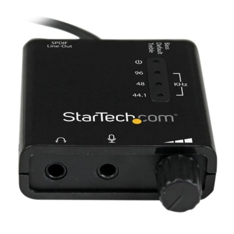 La tarjeta de sonido externa USB, modelo ICUSBAUDIO2D, le permite agregar una salida de audio digital S/PDIF y conexiones de audio/micrófono análogo de 3,5 mm a un sistema a través de USB: una práctica manera de reemplazar el uso de una tarjeta de sonido interna sin tener que abrir la caja del ordenador. Para sonido de cine en casa, el conversor DAC (conversor digital a análogo) USB ofrece frecuencias de muestreo de 96 KHz / 24-bits tanto para la reproducción, como la grabación, así como un puerto S/PDIF de 3,5 mm con soporte para sonido Dolby® Digital 5.1 envolvente (AC3) y pass-through DTS® (Nota: El sonido envolvente 5.1 es compatible sólo con Windows®). Este versátil adaptador de audio USB incluye una conexión TRRS de 3,5 mm de 4 posiciones para auriculares o una combinación auriculares/micrófono. Además, un práctico control de volumen externo para ajustes rápidos, un interruptor de hardware de ecualizador (EQ) para incrementar los sonidos bajos («Bass») o agudos («Treble») y un indicador LED con barra de estado que muestra la frecuencia de muestreo. Respaldado por la garantía de dos años de StarTech.com y con soporte técnico gratuito de por vida.
