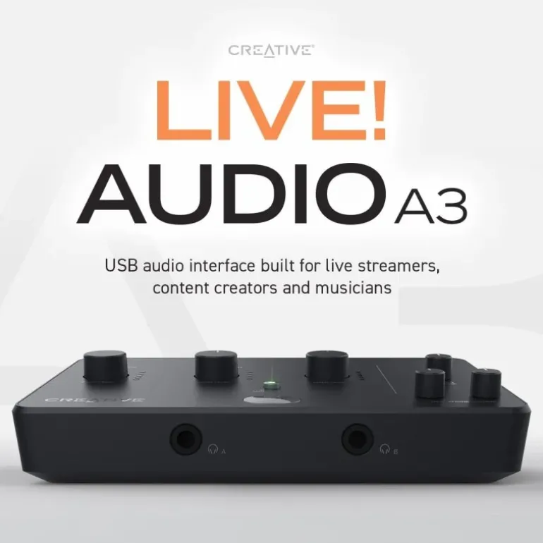 Libere su potencial creativo con el nuevo Creative Live! Audio A3 con interfaz de audio USB.