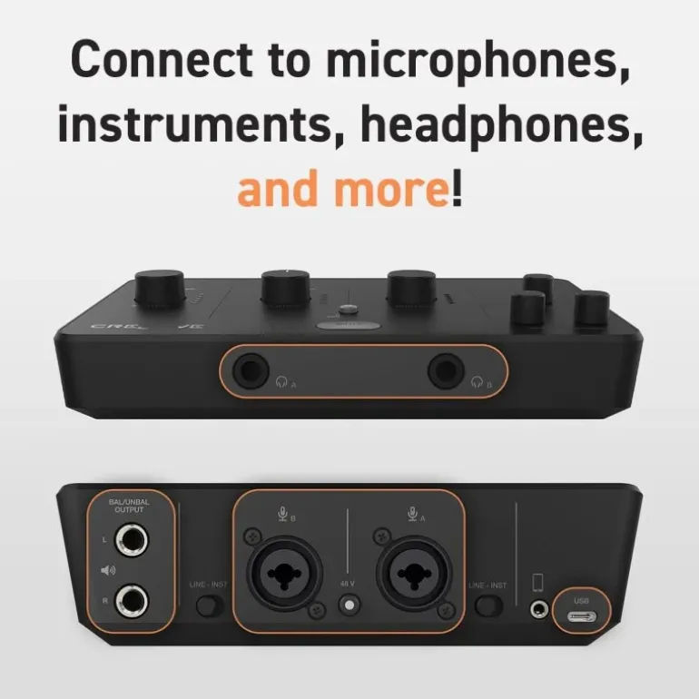 - Streaming y grabación sin esfuerzo. Capture la riqueza de su sonido con la alimentación phantom de 48 V integrada para micrófonos XLR sin adaptador de corriente externo.
