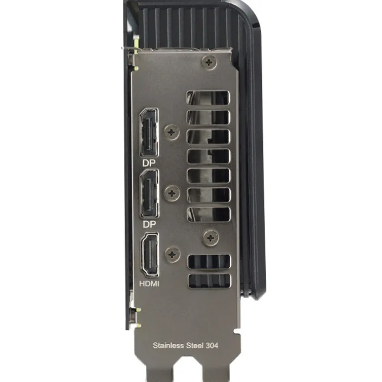 Las grandes rejillas de ventilación de la placa posterior mejoran significativamente la disipación de calor, lo que ayuda a mantener la GPU más fría durante las tareas intensas. Este flujo de aire adicional ayuda a garantizar temperaturas óptimas, aumentando el rendimiento, la longevidad y la estabilidad al defenderse contra el sobrecalentamiento y el estrangulamiento térmico.