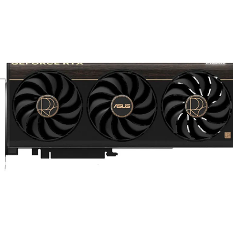 La ProArt GeForce RTX鈩 combina un diseño compacto de 2,5 ranuras con una potente refrigeración -tres ventiladores Axial-tech, una cámara de vapor y una almohadilla térmica de cambio de fase para la GPU- para ofrecer el rendimiento de la serie GeForce RTX 50 tanto en torres completas como en SFF que ahorran espacio. Un puerto USB Tipo-C® mejora la versatilidad para los flujos de trabajo de creación de contenidos, mientras que un embellecedor laminado con motivos de madera y el logotipo Aura iluminado en un tono bajo contribuyen a ofrecer una estética refinada .