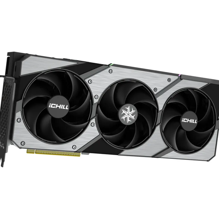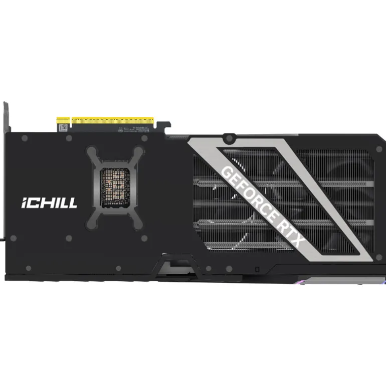 El sistema de enfriamiento iCHILL X3 cuenta con tres ventiladores de alta eficiencia que optimizan el flujo de aire a través del disipador térmico de gran tamaño. Las aletas y el diseño avanzado garantizan que el calor se disipe rápidamente, manteniendo la GPU fresca incluso durante largas sesiones de juego o renderización intensiva.