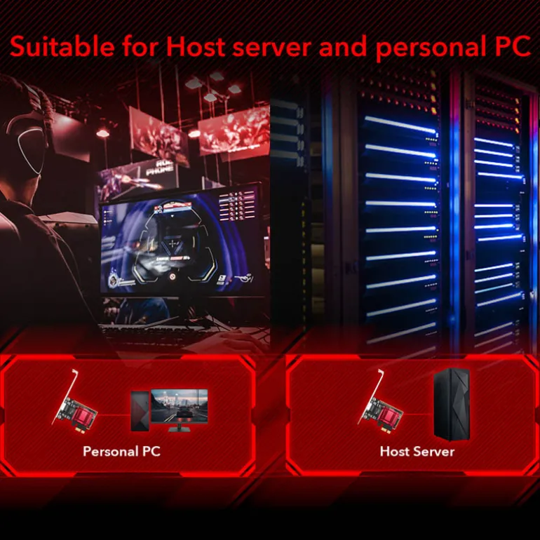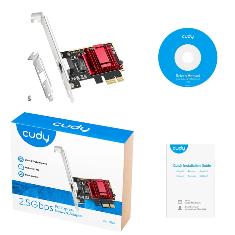 El Adaptador de Red PCI Express PE25 ofrece una amplia gama de velocidades, desde 10 Mbps hasta 2.5 Gbps, lo que permite adaptarse a diversas necesidades de conectividad y aplicaciones de alta velocidad.