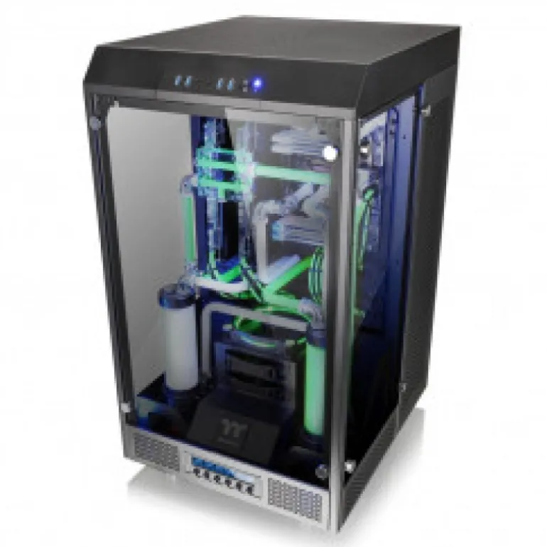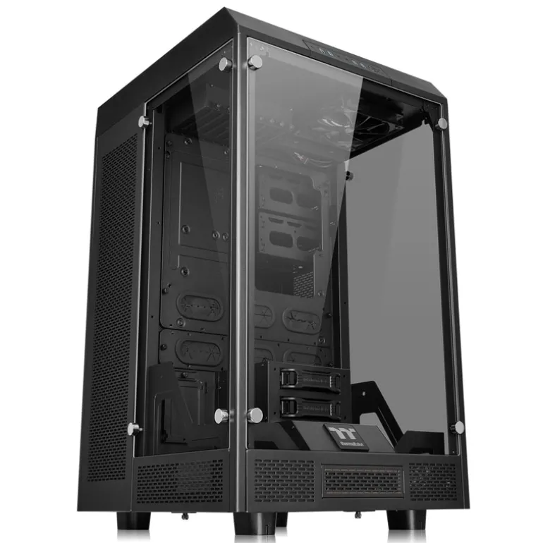 | Thermaltake The Tower 900 E-ATX Vertical Super Tower Chassis Diseñado en colaboración con Watermod France, el nuevo chasis Thermaltake The Tower 900 representa la pasión de Thermaltake por la innovación, el espíritu de Watemod France y nuestra visión de crear el sistema de refrigeración líquida ESPORTS Modding. La Torre 900 viene con tres paneles de vidrio templado más el panel de acero inoxidable mecanismo seguro que proporciona protección para el hardware de PC interior, y permite a los usuarios mostrar su conjunto dedicado. También ofrece capacidad completa de ensamblaje y capacidad de expansión para entusiastas para crear sistemas masivos de refrigeración líquida. ¡La torre 900 ha redefinido la estética arquitectónica del diseño del chasis! |