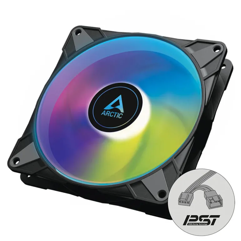 El P14 PWM PST A-RGB cuenta con 12 LED A-RGB digitales en el centro del ventilador. Estos pueden ser controlados de manera independiente y son compatibles con los estándares A-RGB comunes de los principales fabricantes de placas base. El ventilador puede iluminarse completamente directamente a través del conector A-RGB de la placa base o mediante un controlador externo y sincronizarse con la iluminación de otros componentes.