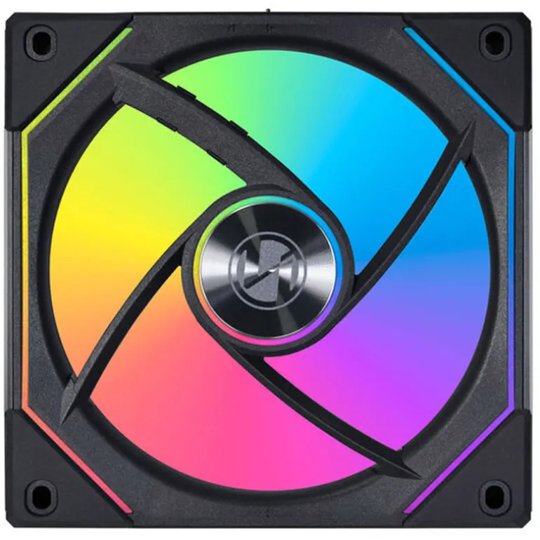 Dentro del Lian Li UNI FAN SL-INF 120 Reverse Blade, hay un total de 40 LEDs RGB direccionables digitalmente. Se distribuyen en el eje del rotor y en dos tiras delgadas en el bastidor de aluminio. En la parte frontal del hub y en dos lados, también hay espejos infinitos que realzan de forma única los efectos de iluminación.