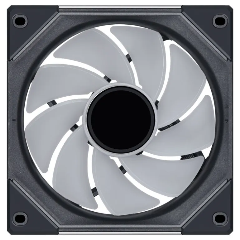 El Lian Li UNI FAN SL-INF 120 Reverse Blade alberga un total de 40 LEDs RGB direccionables digitalmente. Están distribuidos por el cubo del rotor y dos finas tiras en el marco de aluminio. En la parte frontal del cubo y en dos laterales, también se han instalado espejos que realzan los efectos de iluminación.