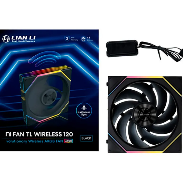 UNI FAN TL Wireless y TL LCD Wireless cuentan con la innovadora tecnología de sincronización inalámbrica de LIAN LI, que utiliza una señal inalámbrica de 2.4 GHz para controlar los efectos de iluminación y la velocidad del ventilador para mejorar aún más la experiencia de construcción de la PC al tiempo que ofrece una refrigeración eficiente, una iluminación deslumbrante y un funcionamiento silencioso.