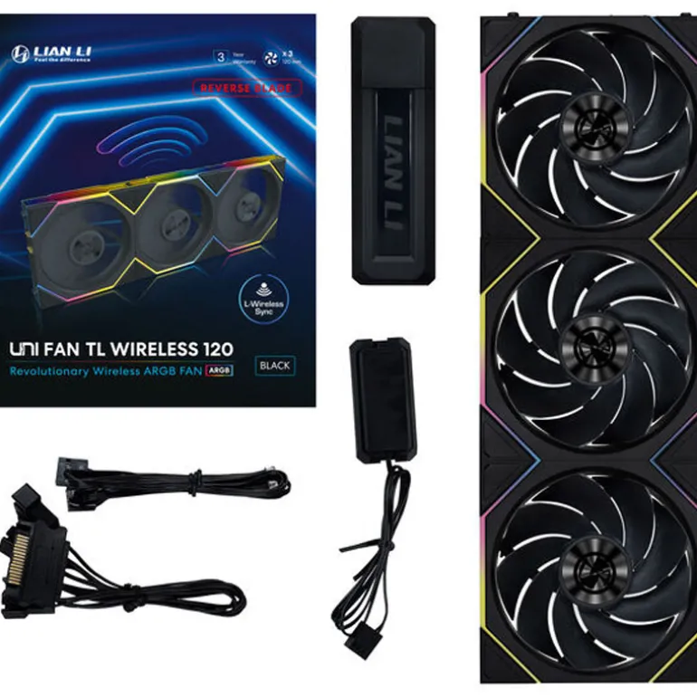 Ventilador Lian Li Uni Fan TL120 Wireless ARGB Reverse Blade 120mm Triple Pack Negro