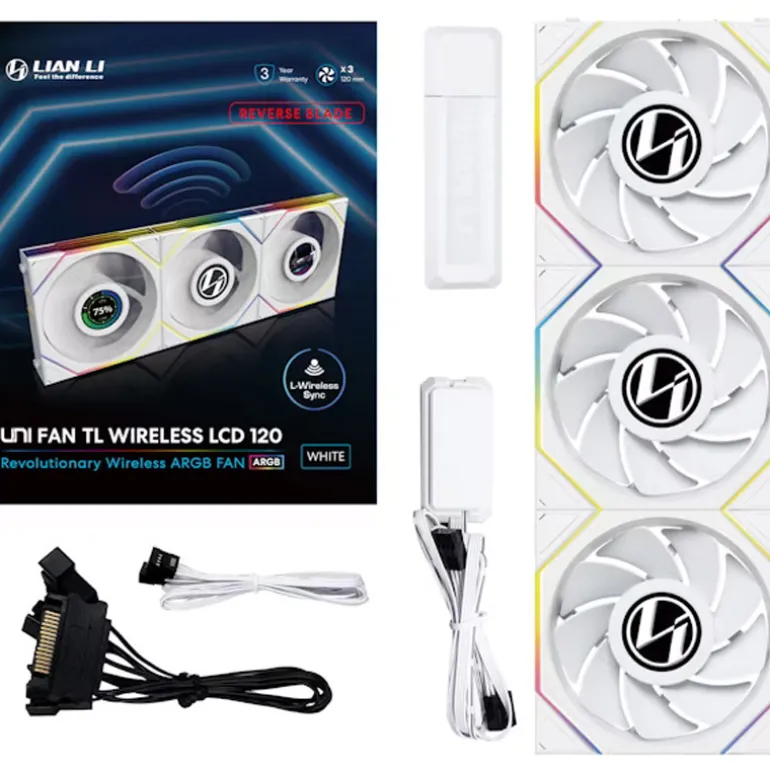 Ventilador Lian Li Uni Fan TL120 Wireless LCD ARGB Reverse Blade 120mm Triple Pack Blanco