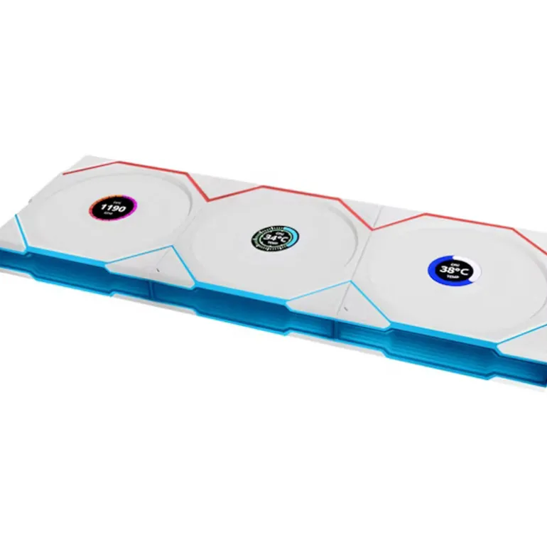 Monitoree la temperatura y la carga de la CPU y la GPU con nuevos sensores de hardware animados integrados que se muestran directamente en la pantalla. Para grupos de 3 ventiladores LCD, se pueden mostrar múltiples puntos de datos simultáneamente.