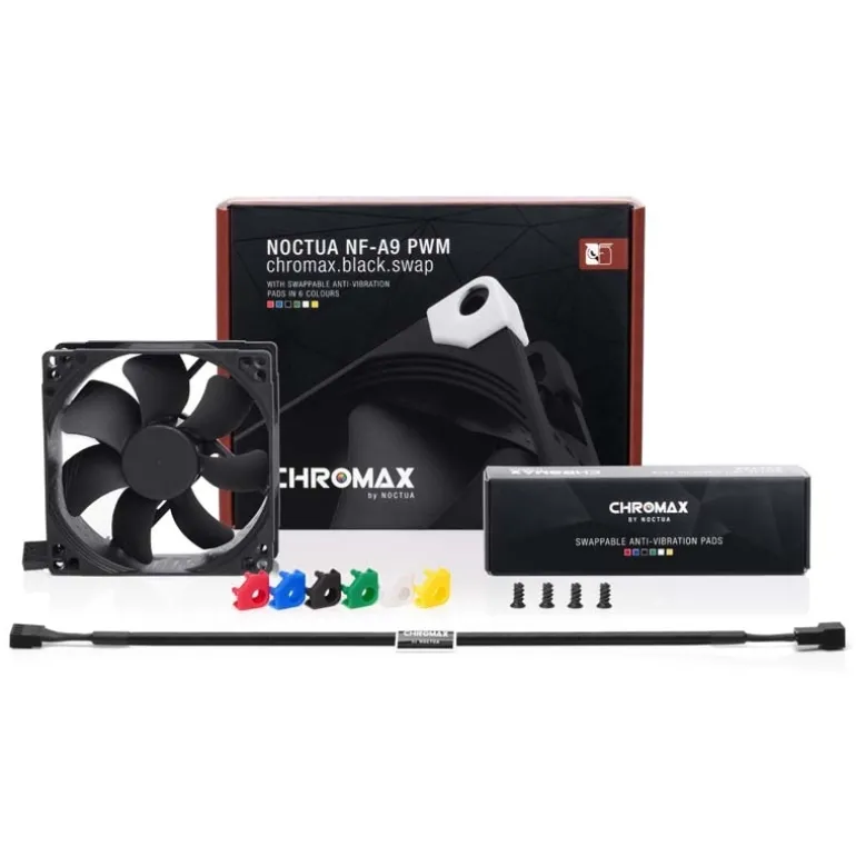 La edición chromax.black.swap combina la característica refrigeración silenciosa del NF-A9 con un atractivo diseño totalmente negro y un conjunto de paneles anti-vibración intercambiables de color rojo, blanco, azul, verde, amarillo y negro que permiten la personalización del ventilador para que combine con cada estructura individual. Para una mayor personalización, ofrecemos una amplia gama de accesorios como cables o soportes anti-vibración de colores que se venden por separado. Equipado con el rodamiento Noctua SSO2 de máxima fiabilidad y calidad, más de 150.000 horas de tiempo medio de fallo, sin posibilidad de reparación (MTTF) y una garantía de fabricación de 6 años, el NF-A9 PWM chromax.black.swap es la elección perfecta para todos los usuarios que valoran el aspecto individual y personalizado tanto como la calidad y el rendimiento.