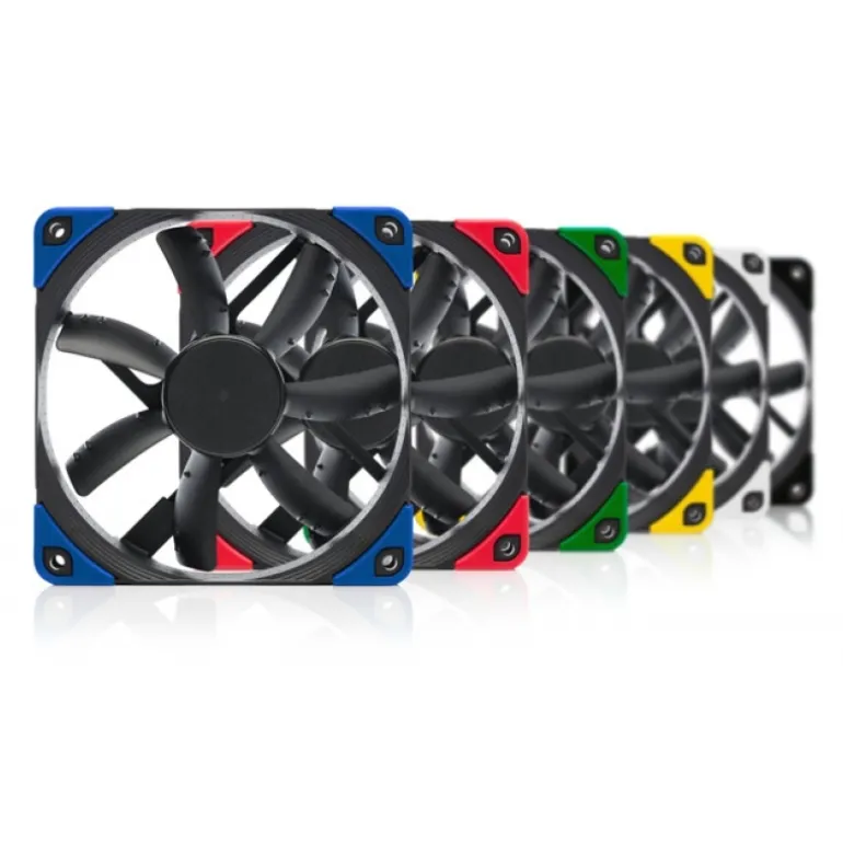 La edición chromax.black.swap combina la característica de refrigeración silenciosa del NF-S12A con un atractivo diseño totalmente negro y un conjunto de almohadillas anti-vibración de color rojo, blanco, azul, verde, amarillo y negro que permiten la personalización del ventilador para que coordine con cada estructura individual.